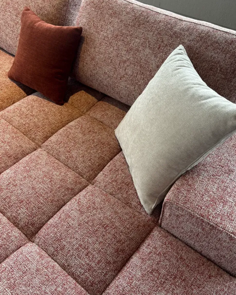 Divano mod.Blake con terminale 185 comprensivo di bracciolo, con chaise lounge nelle dimensioni 125×145. Comprensivo di n.03 cuscini