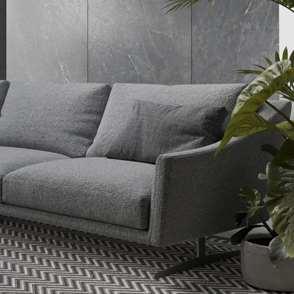 Le sue forme leggere e raffinate, unite ai cuscini morbidi e imbottiti, offrono un comfort ottimale e un tocco di freschezza minimalista al soggiorno.