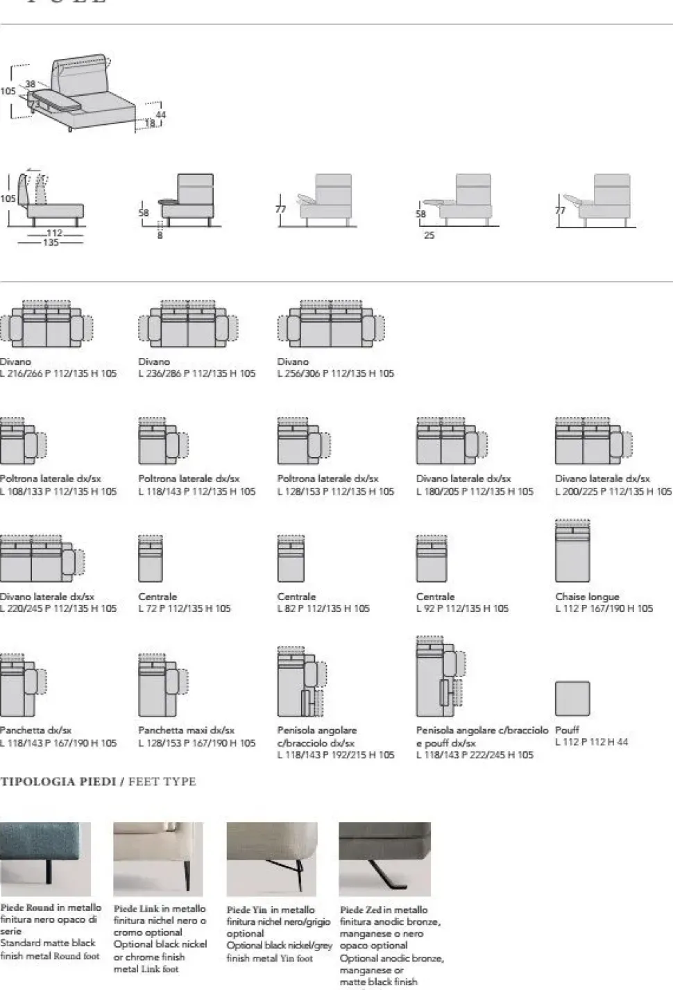 Divano mod. Pull , proposta lineare tre posti da cm. 216 . Prezzo con tessuto in cat. A , tutti gli schienali sono dotati di un comodo meccanismo che consentono di aumentare la seduta per un confort senza limite . Piedini considerati nel costo modello Link come da foto .Cuscini arredo optional.