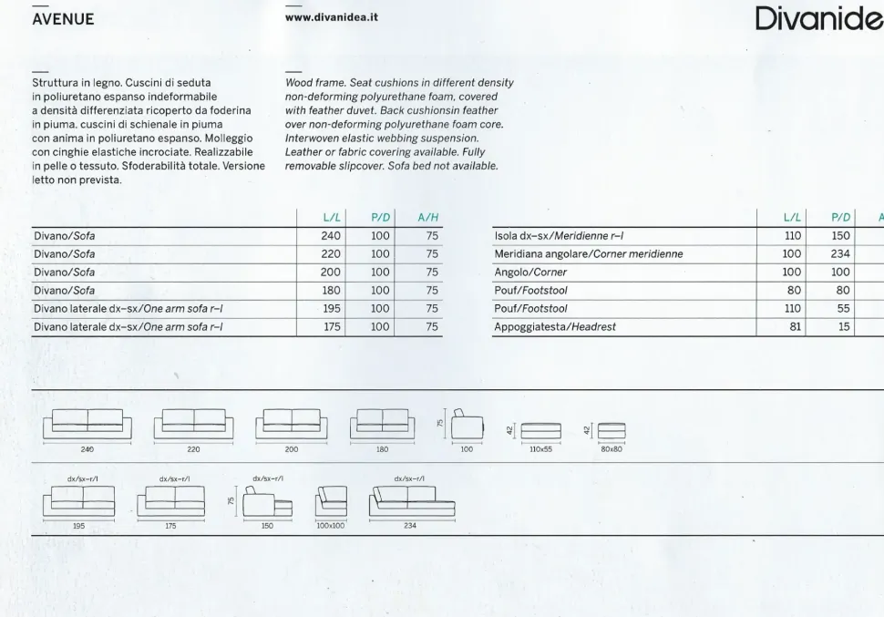 Divano informale ma elegante e trendy dalle forme morbide. Il molleggio con cinghie elastiche incrociate e l’imbottitura in poliuretano espanso indeformabile garantiscono una grande comodità. Il modello è realizzabile soltanto in tessuto ed è completamente sfoderabile.