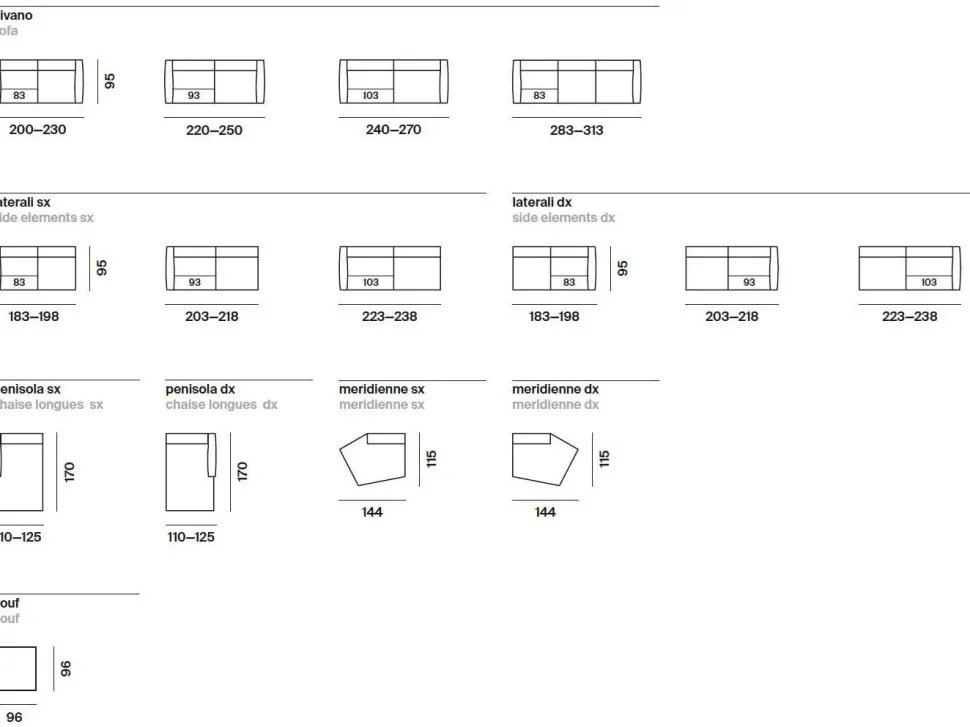 La linea WING dispone di divani fissi e da molti elementi componibili per sodisfare ogni esigenza.
