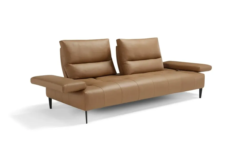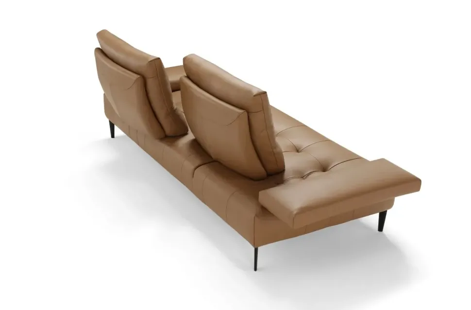 Divano in pelle Tate di Egoitaliano in vera pelle da cm. 234. I cuscini morbidi e avvolgenti , insieme alle spalliere basculanti con meccanismo a compasso , consentono di regolare la profondità della seduta per un comfort su misura. Grazie allo stesso sistema, anche la larghezza della seduta può essere ampliata .