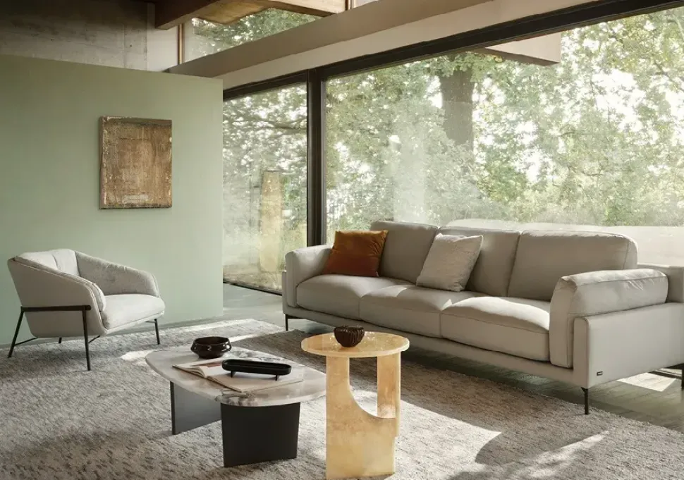 Allo scopo di ottimizzare lo spazio nel living, è consigliabile scegliere gli arredi secondo forma e dimensione degli ambienti, valutando dunque anche il tipo di imbottito che fa per te tra divani, poltrone, divani letto e molto altro; il modello presente in foto è appartenente alla collezione di lineari di ottima fattura firmati dal brand.