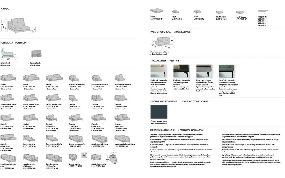 Piedini Link di serie , il costo si riferisce al tessuto in cat. A – una vasta scelta di tessuti in altre categorie.
