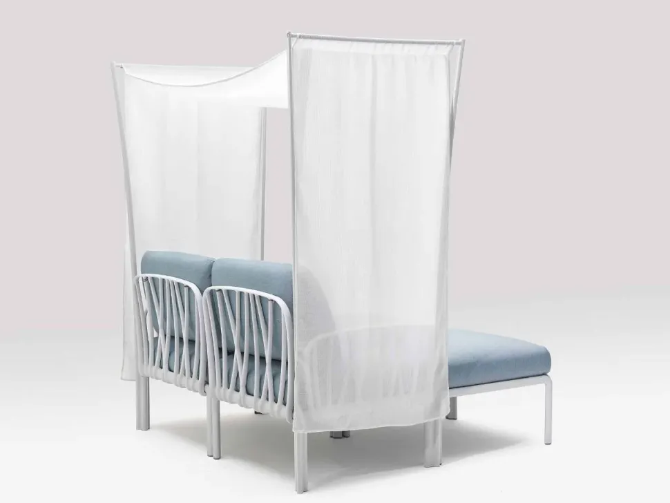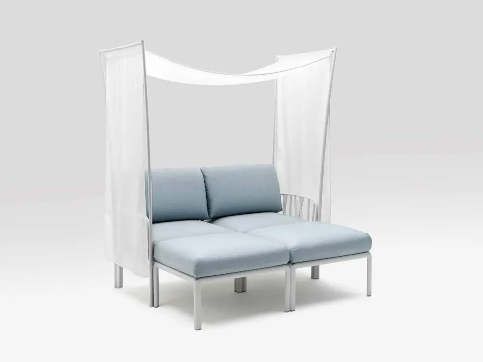 Set Letto Baldacchino Komodo 2 posti di Nardi: 1 Komodo Elemento Terminale SX 1 Komodo Elemento Terminale DX 2 Komodo Pouf 1 Komodo Ombra 2 Disponibile nelle colorazioni Bianco-Ghiaccio e Bianco Giungla. Komodo è un divano innovativo e dalla grande flessibilità compositiva. Il suo design organico è ispirato agli intrecci formati dai rami delle piante in natura. La sua struttura è realizzata in polipropilene fiberglass trattato anti-UV color tortora e progettato per resistere nel tempo senza subire alterazioni di colore e proprietà. La seduta e lo schienale sono imbottiti e sfoderabili con rivestimento in tessuto. Dotato di piedini antiscivolo. Il Komodo Ombra 2 è un fantastico complemento d’arredo da utilizzare in abbinamento ai moduli della linea Komodo. Realizzato con struttura in polipropilene fiberglass e telo in tessuto. Goditi le le giornate primaverili a bordo piscina grazie al fantastico letto Komodo.