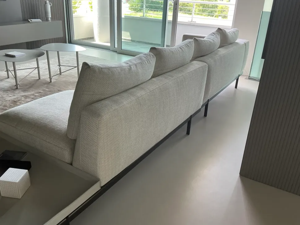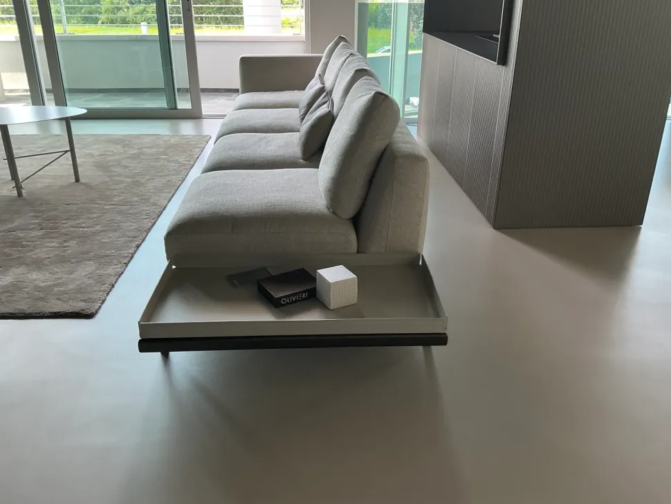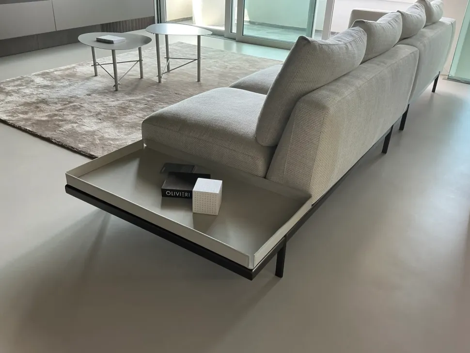 Divano componibile BONALDO L. 362 P. 98 completo di tavolino a vassoio e 2 cuscini volanti. Composizione costituita da 2 elementi lineari. Molto confortevole.
