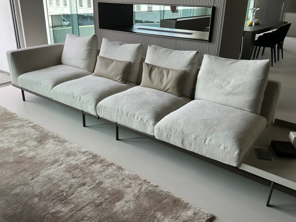 un soggiorno, che sia in stile tradizionale o moderno, ha bisogno di molteplici complementi accessori al fine di essere ultimata a dovere: tra questi c’è sempre un lineare come il modello Phil qui disponibile, essenziale per l’ organizzazione e la resa estetica dell’ambiente. Imbottito Phil Bonaldo a prezzo ribassato trasporto escluso per quest’offerta. Materiali durevoli e design unico connotano questo modello di imbottito, elegante e di grande personalità: si rivelerà soluzione ideale per completare esteticamente il tuo soggiorno in stile design. Il soggiorno è la zona della casa dove più spesso accoglierai amici e parenti per passare qualche ora facendo due chiacchiere e rilassandoti: in un soggiorno di tutto rispetto sicuramente c’è sempre il giusto numero di posti a sedere; per cui è di primo piano tenere a mente anche questo fattore prima di scegliere un imbottito: il modello qui disponibile è un 4 posti. L’imbottito Phil qui disponibile, vale a dire uno dei modelli che rientrano nella collezione di imbottiti di lunghezza che va da 351 a 375 cm, è ideale per ambienti di molteplici misure; gli arredi devono completare gli ambienti interni valorizzando anche le qualità pratiche degli stessi: per cui è tanto importante selezionarli anche in base alle loro misure ed alla configurazione degli interni dove verranno sistemati. Le molteplici proposte di rivestimenti di cui disponiamo sono ideali per trovare soluzioni alle aspettative di ciascuno in un’ampia gamma di colori e finiture; questo modello rivestito in tessuto è ideale per trovare soluzioni alle più molteplici aspettative di stile, garantendoti pure di completare esteticamente il tuo soggiorno.