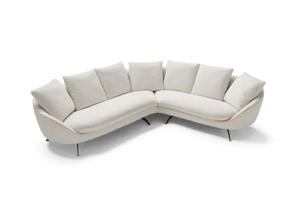 Design ricercato e dallo spirito accogliente per il modello angolare Sipario. Caratterizzato dall’andamento curvilineo della solida struttura in legno su cui sono alloggiate le sedute, è al contempo espressione di dinamismo grazie ai cuscini volanti in piuma d’oca che ne definiscono la spalliera.