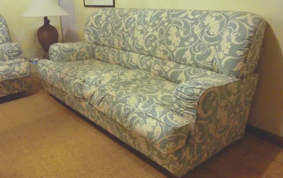Divani in tessuto tipo sanderson sfoderabili con imbottitura in piuma.