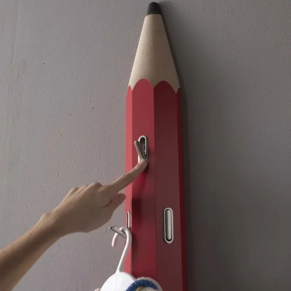 Matità è un attaccapanni a forma di matita realizzata da MACONI, un appendiabiti da parete originale ed ironico.