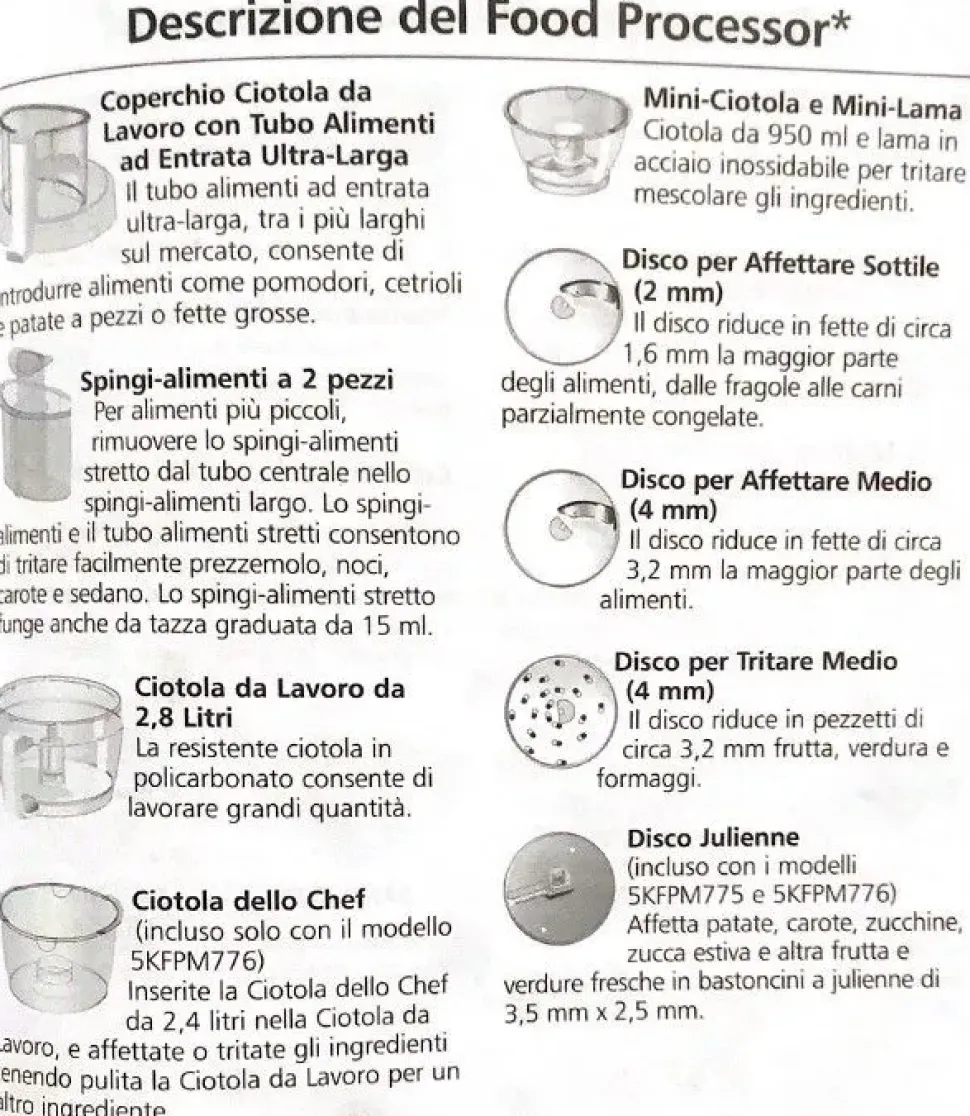 - Il Food Processor Kitchen Aid è uno strumento di cucina versatile e potente, ideale per preparare una vasta gamma di cibi.