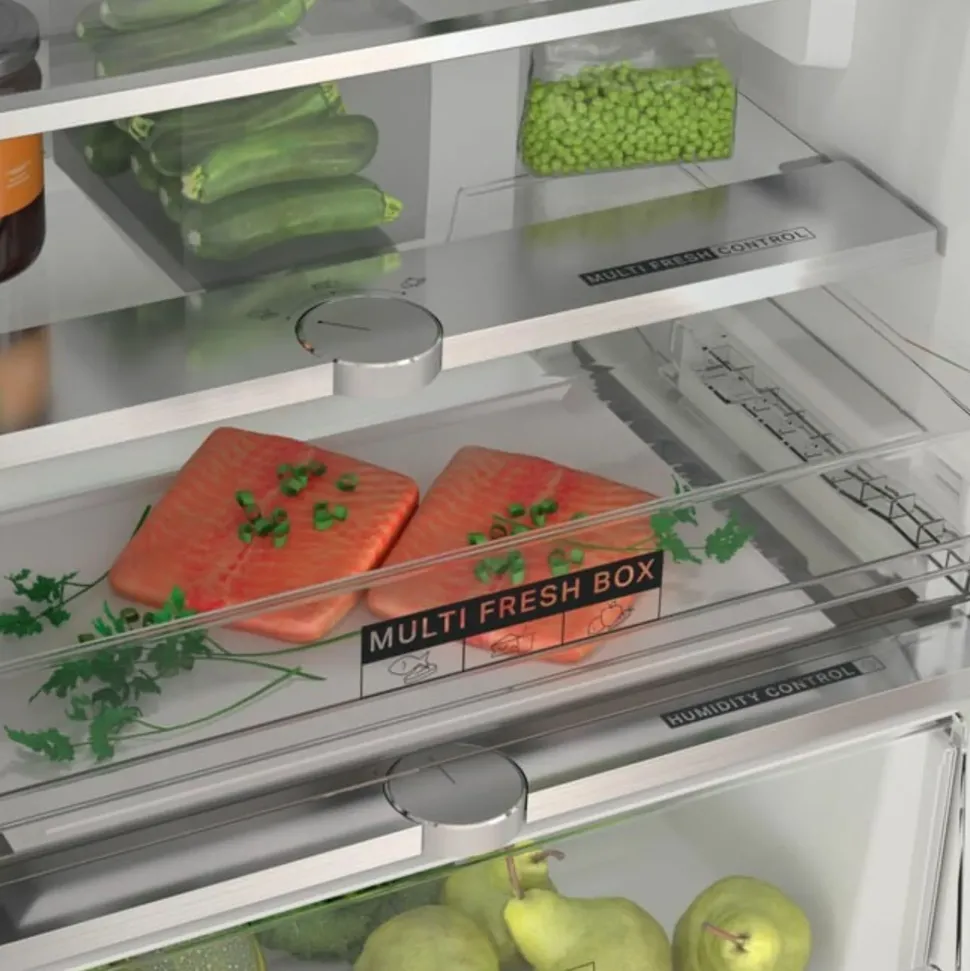 Le caratteristiche di questo frigorifero combinato da incasso Whirlpool, sono i suoi ripiani in vetro, robusti ed eleganti al tempo stesso, mentre il flusso d’aria regolare e uniforme all’interno dell’elettrodomestico garantisce una ventilazione potenziata. Dotato di sensori 6° SENSO, riescono ad abbassare automaticamente la temperatura all’interno dell’elettrodomestico quando vengono introdotti nuovi alimenti, riducendo così il consumo di energia elettrica. Inoltre ha un comodo porta-bottiglie per conservare le bottiglie con sicurezza. È attrezzato di Box appositi per posizionare i cibi più delicati. Il numero dei cassetti o cesti nel freezer sono 3, mentre il numero di ripiani nel compartimento frigorifero sono 5.