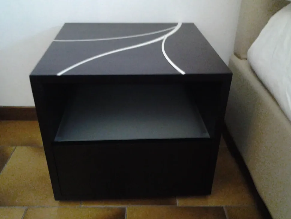 Entrambi gli articoli presentanoun intarsio superiore amovibile che consente il passaggio di cavi elettrici relativi ad eventuali lampde in appoggio