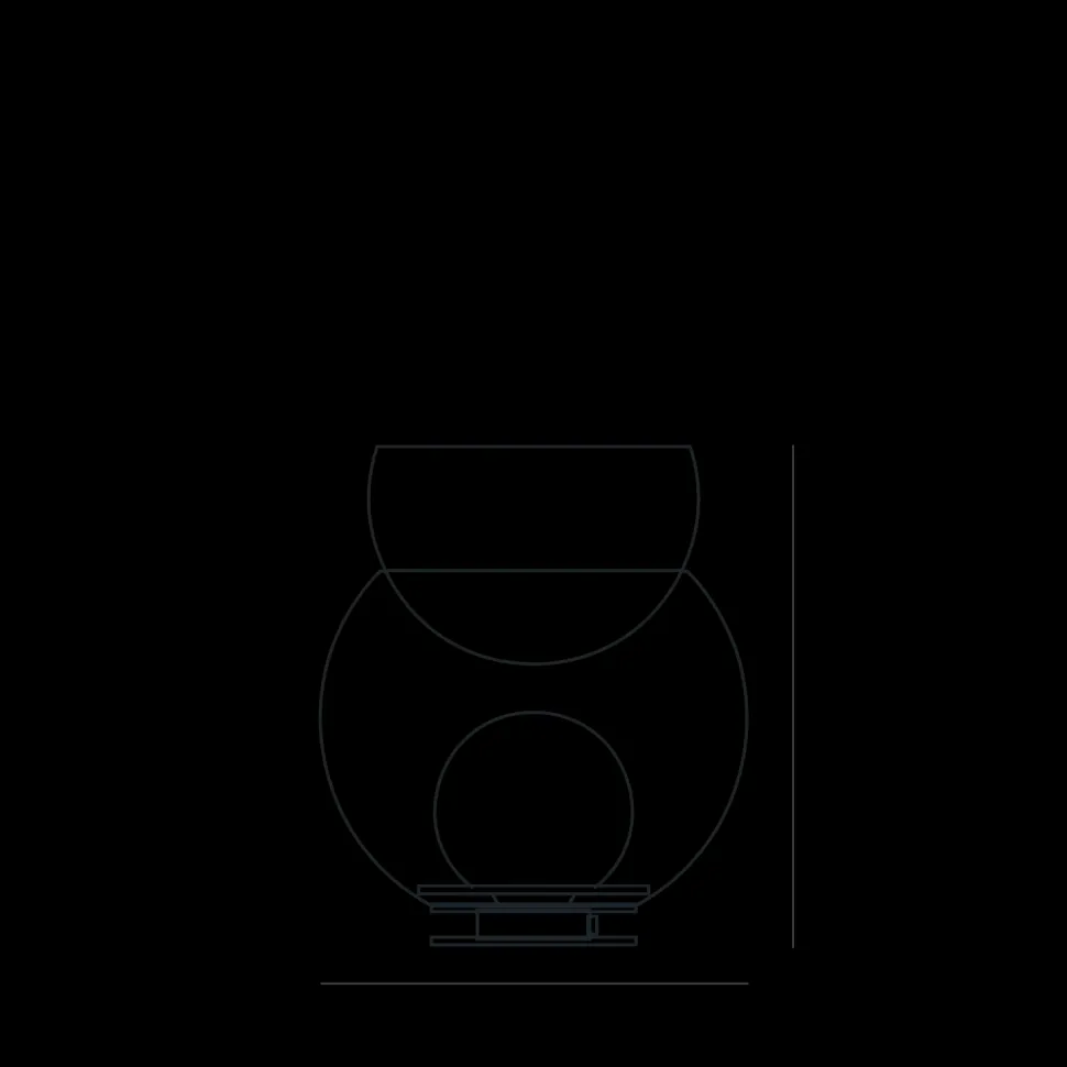 Ibrido tra un vaso e una lampada, Giova segna l’esordio di Gae Aulenti nel campo dell’illuminazione d’autore. Disponibile in due dimensioni, è una vera e propria scultura luminosa. Su una base in metallo è posizionato un globo trasparente che include la sfera interna, che alloggia la sorgente luminosa. Al di sopra, appoggiata, una coppa in vetro soffiato pelugoso (pieno di bolle d’aria irregolari) è a tutti gli effetti, un vaso portafiori.