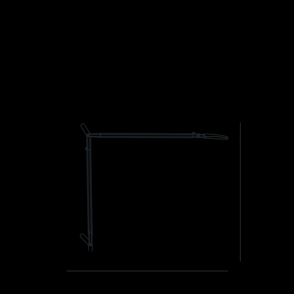 Lampada da tavolo a luce diretta. Accensione e regolazione flusso luminoso tramite sensore touch posto sulla testa. Inoltre è possibile accendere e spegnere la lampada passando la mano sotto la testa dell’apparecchio. Montatura composta da una testa e due aste strutturali in alluminio verniciato. Cavo di alimentazione e spina neri. Alimentatore su spina con plug intercambiabili (uk – usa -europa ). Led integrato.
