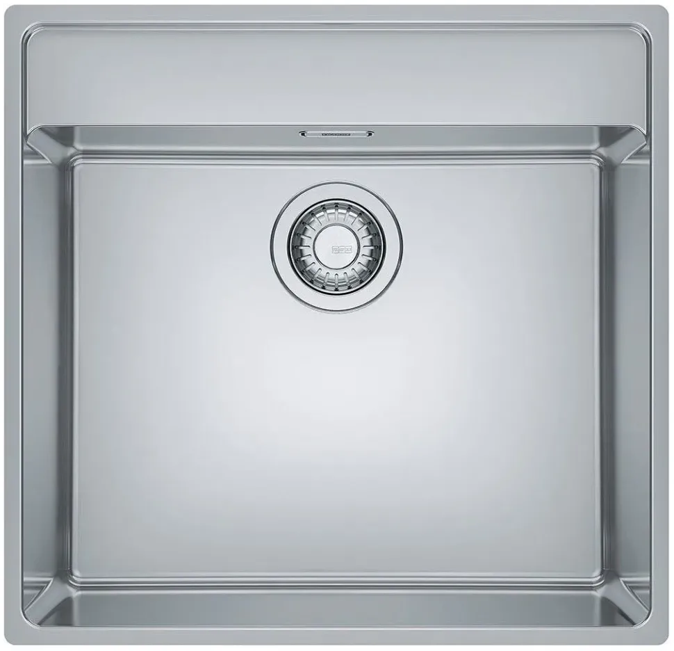 Lavello sotto top FRANKE nel modello MARIS nella finitura inox satinato è dotato di 1 vasca con profondità 180 mm e raggio 16, troppopieno perimetrale, cestello Premium, gruppo di scarico e sifone.