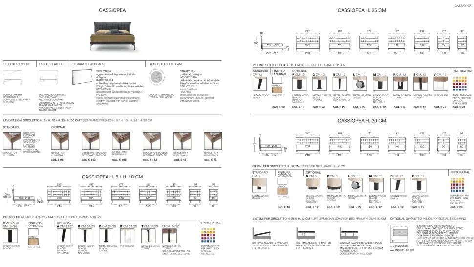 - La proposta è per il letto CASSIOPEA dotato di rete a doghe 160×200, giroletto e piedi standard