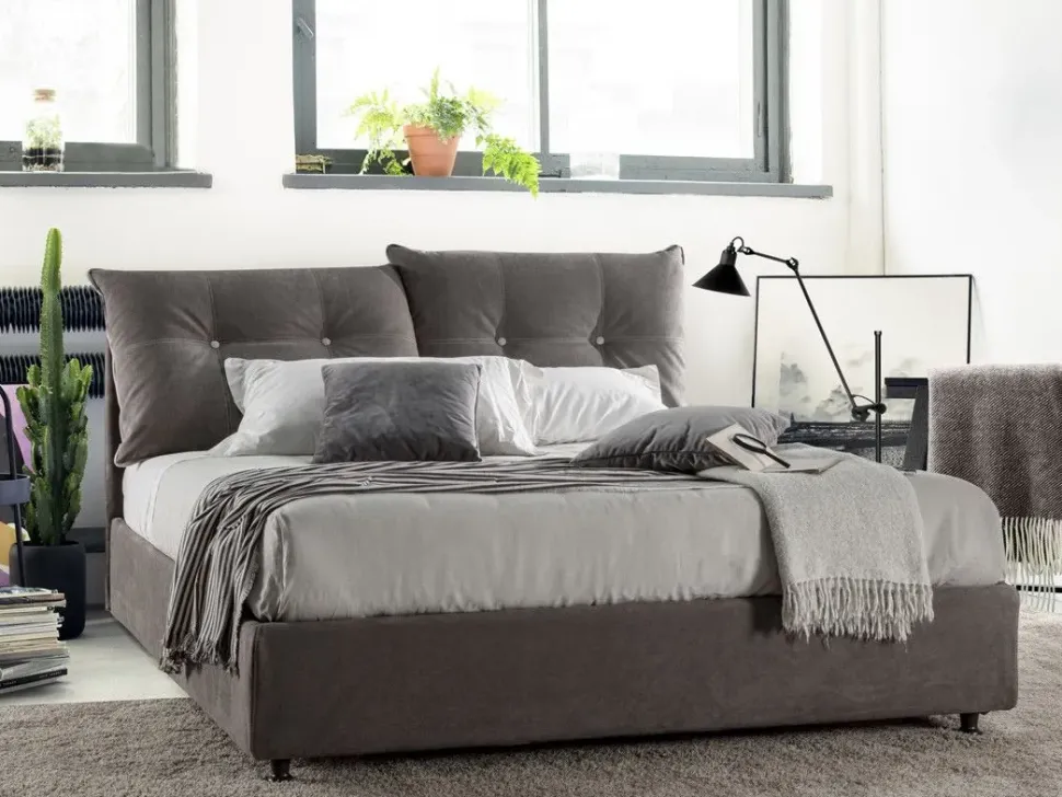 Due morbidi cuscini con doppia cucitura e bottoni, sono la particolarità del letto con testata dall inclinazione regolabile.