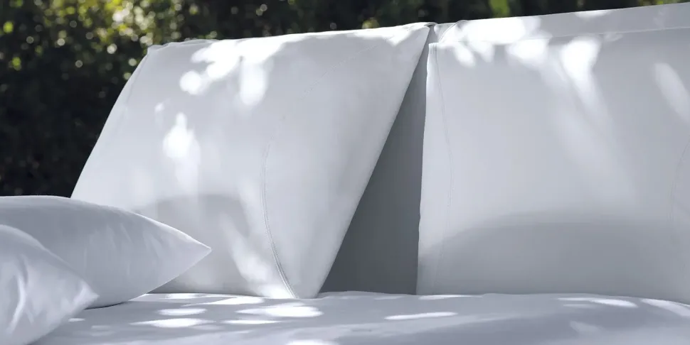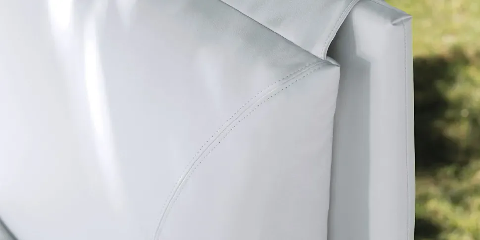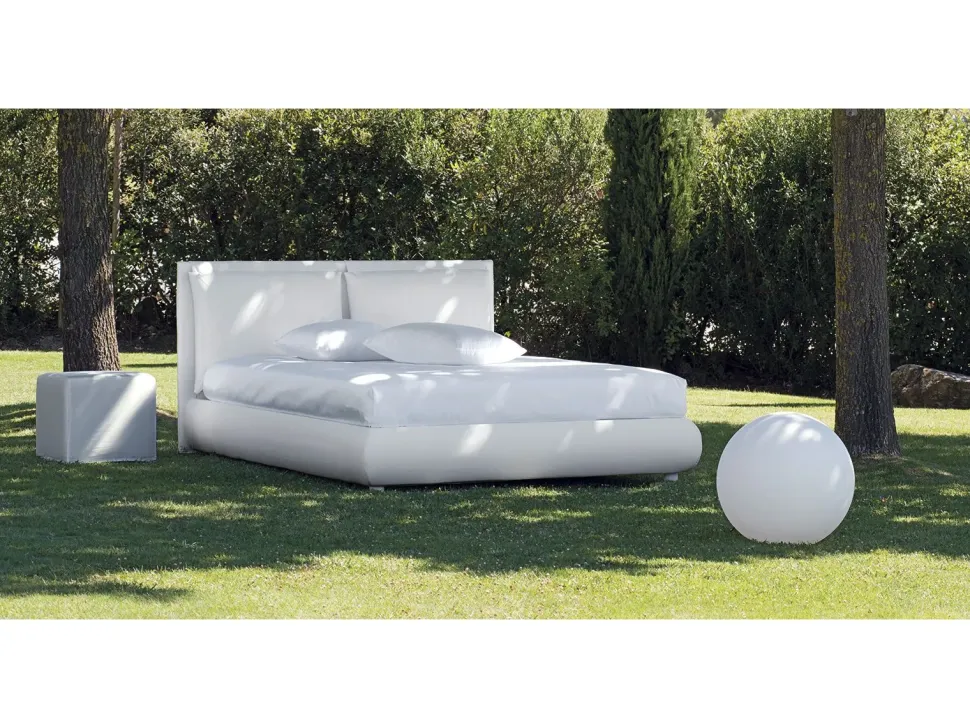 Letto imbottito con testata completa di cuscini reclinabili, realizzato con struttura interamente sfoderabile e smontabile.