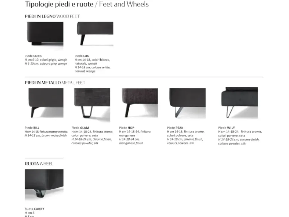 - Per configurazione di misure, piedi o rivestimenti di categoria differente quotazione a richiesta.