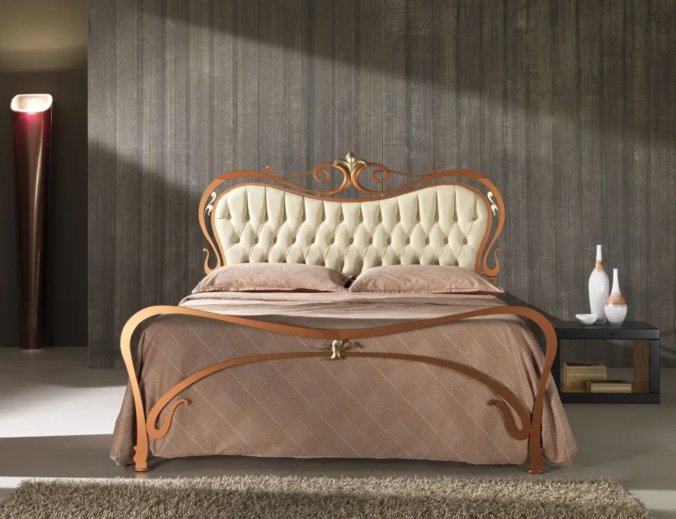 - Modello:Letto in ferro color rame e pelle luxury