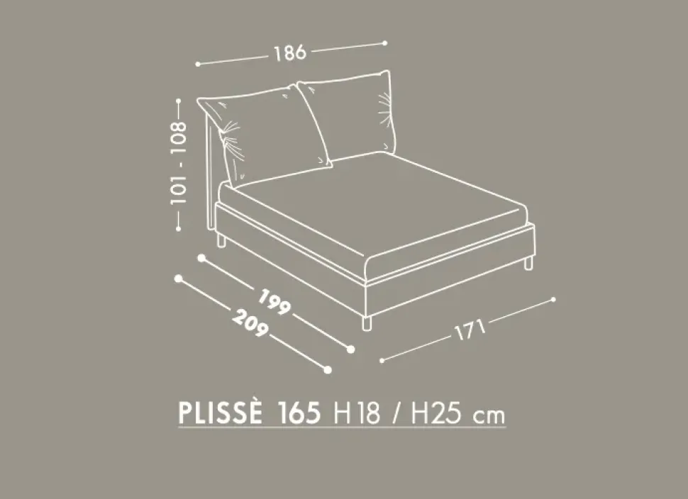 - Le molteplici dimensioni disponibili per un letto Oggioni sono adatte per adattarsi alle esigenze più disparate, tra singoli, matrimoniali ed a una piazza e mezza: questo modello Plissè è matrimoniali; i letti sono componenti imprescindibili per concretizzare il tuo progetto per la camera da letto e garantirti il relax totale a fine giornata, proprio per questo è essenziale valutare pure le differenti misure disponibili.