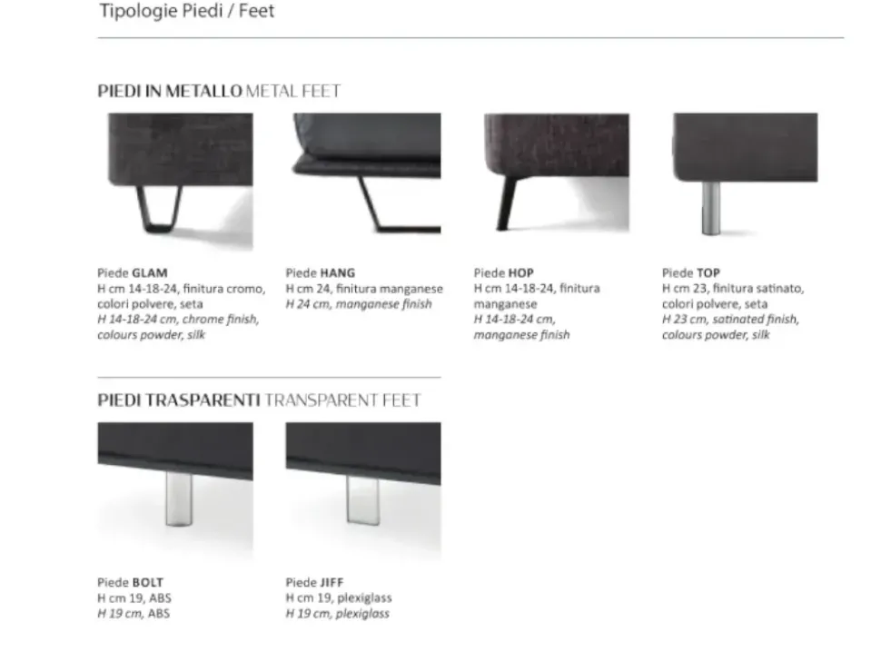- Per configurazione di misure, piedi o rivestimenti di categoria differente quotazione a richiesta.