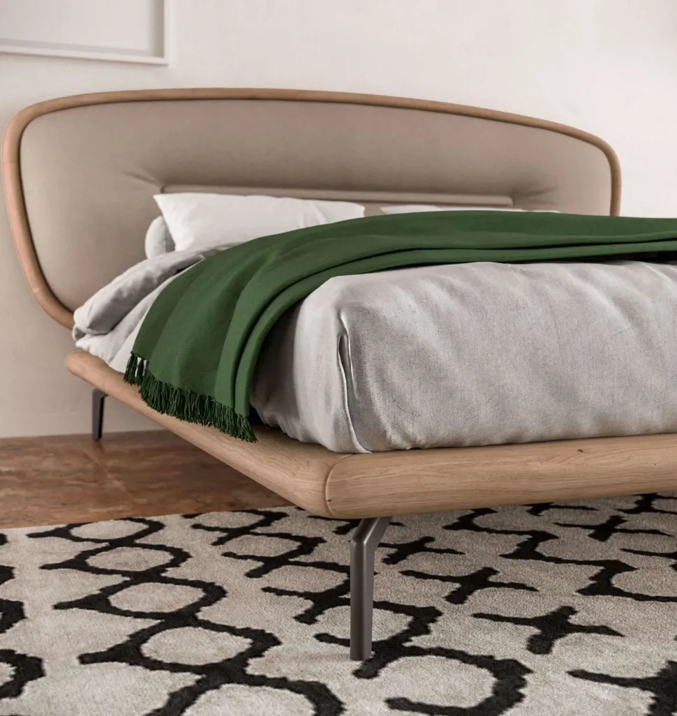 Romantico per definizione, Romance ci trasporta in una nuova dimensione grazie all’armonica combinazione delle sue finiture. L’inserto centrale nella testata imbottita, incrementa l’effetto della profondità, creando una dolce melodia di movimenti. Un letto che ci accoglie al primo sguardo con le sue forme morbide e ci invita ad indugiare prima di accompagnarci nel sonno. Il letto è proposto con diverse combinazioni di pelle, eco pelle nabuk e legno. E’ inoltre disponibile nelle dimenioni per materasso 160 cm e 180 cm, rete a doghe in legno multistrato, piedini in metallo verniciato e giroletto sfoderabile.