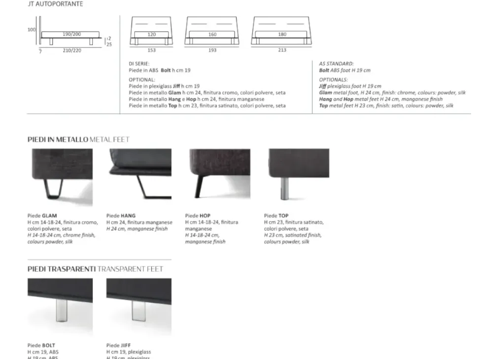 - Il prezzo esposto è relativo alla versione con rete autoportante160x200 o 190, con rivestimenti a scelta in categoria A, piedi di serie in ABS trastarente a cilindro modello BOLT.