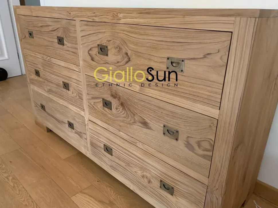 Letto Etnico Teak Letto Etnico Teak , prodotto realizzato artigianalmente in Teak massello di alta qualità con finitura naturale a cera. La linearità del letto rende protagonista l’essenza del legno, rendendolo adatto ad ogni tipo di ambiente, dal classico al moderno. Il Teak grazie alle sue proprietà fisiche uniche è garanzia di resistenza e longevità. Questo è un prodotto solido e realizzato a mano. Il letto è compreso di rete a doghe in legno di Teak. Della stessa linea trovate anche il comò/cassettiera a 6 cassetti e i comodini con 1 cassetto. Misure in cm: -Letto: 195 x 220 (misure rete: 165 x 200 cm) PREZZO PROMO 1249,00 -Comò/cassettiera: 150 x 45 x 85 h PREZZO PROMO 849,00 -Comodino: 45 x 40 x 35 h PREZZO PROMO 249,00 PREZZO IN PROMOZIONE DI CAMERA COMPLETA 2190,00 (LETTO + COMO’ + 2 COMODINI) CHIEDI INFO E PREVENTIVI Da 20 anni Giallo Sun produce, importa e vende soluzioni d arredo in stile orientale. Gestiamo una vasta gamma di articoli, dai mobili ai complementi d arredo per interni ed esterni. Forniamo il gusto dell autenticità e l alta qualità dei prodotti orientali fatti a mano e su misura. Vieni a toccare con mano l autenticità e la bellezza di ogni prodotto nel nostro salone espositivo di 700 metri quadri o visita il negozio online e contattaci! Info prezzi e spedizioni . N.B: MOLTI DEI NOSTRI PRODOTTI SONO ARTICOLI ARTIGIANALI, PRODOTTI A MANO IN TIRATURA LIMITATA PER I QUALI IN ALCUNI CASI, LE RICHIESTE DI ACQUISTO SUPERANO IL NUMERO DEI PEZZI DISPONIBILI IN PRONTA CONSEGNA. SI PREGA PERTANTO DI ACQUISTARE CON LARGO ANTICIPO RISPETTO AI TEMPI DI CONSEGNA IN MANIERA DA PRENOTARE LA PRODUZIONE.