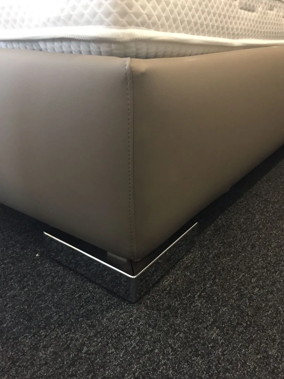 Piedi cromati 20x20mm. Materasso escluso. Testata e giroletto in similpelle color tabacco. No contenitore.