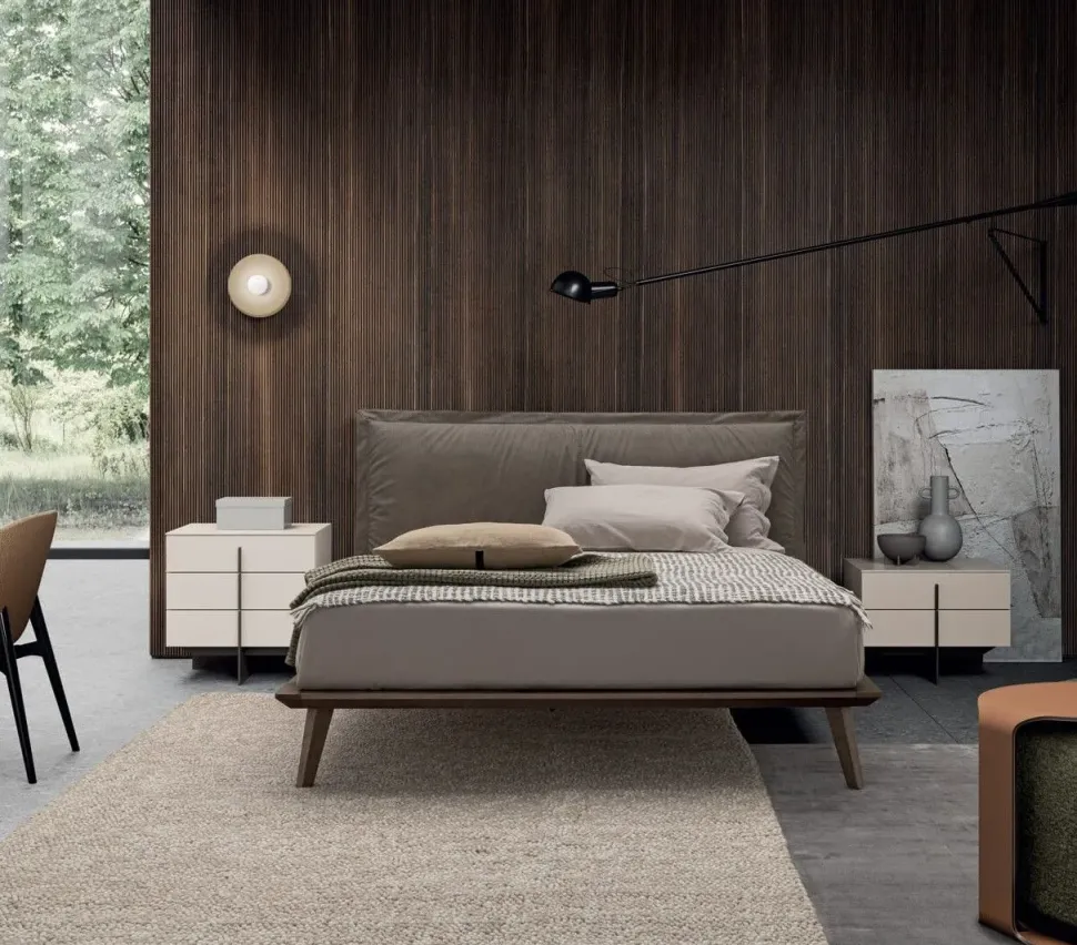 Caratterizzato da un design contemporaneo Morgan è un Letto Dall’Agnese adatto per ambienti eleganti e dallo stile classico. Composto da:-testiera dalla forma di un grande cuscino con le cuciture bene in vista, presenta una struttura interna realizzata con telaio metallico e un imbottitura in poliueretano espanso rivestito con ovatta; -giroletto con struttura interna realizzata inlegno massiccio sagomato di frassino impiallacciato tinto nelle finiture essenza; -piedini donano leggerezza e senso di movimento per via della loro posizione inclinata, sono realizzati in legno massello di frassino tinto nelle finiture essenza con struttura interna in metallo; -rivestimento non sfoderabile , disponibile nelle finiture: pelle, ecopelle, o in tessuto, nelle stesse finiture disponibile il cuscino sfoderabile.