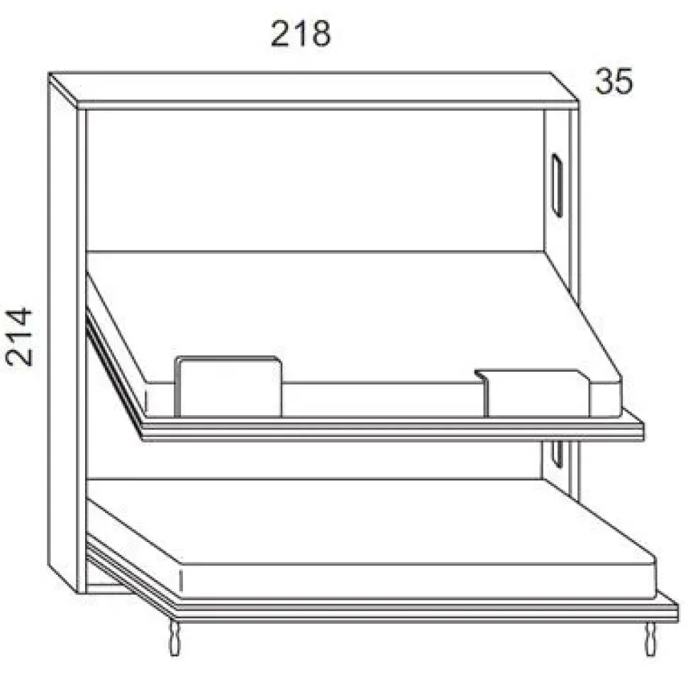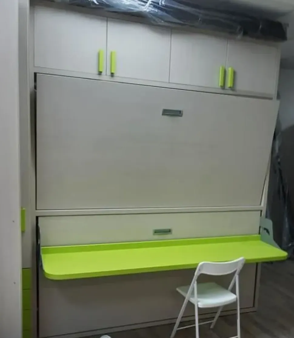 letto trasformabile per camera da letto disponibile in due profondità: il primo presenta gli scaffali e un cuscino porta tubolare in alluminio, il secondo sarà vuoto all’interno. Misure doppie a scomparsa: L. 217,6 P. 35/110 H. 214 cm (aperto / chiuso) L. 217,6 P. 45 / 120.5 H. 214 cm (aperto / chiuso) Non compreso il materasso. Consigliamo un materasso di dimensioni inferiori L. 200 P. 90 H. 18 cm e un materasso di dimensioni superiori L. 200 P. 85 H. 18 cm. letto a castello disponibile in diversi colori personalizzabili, per creare combinazioni di diverse tonalità per la struttura, la facciata e lo schienale interno. Letto matrimoniale con letto superiore a scomparsa completo di scala con sistema di sicurezza, due protezioni flessibili e meccanismo di inclinazione in avanti per un facile riarrangiamento. Il letto singolo inferiore sarà invece dotato di un tavolo pieghevole per uso scrittio di L. 150 P. misure di 60 cm disponibile in vari colori. *** IL PREZZO SI RIFERISCE COME DA SCHEMA***