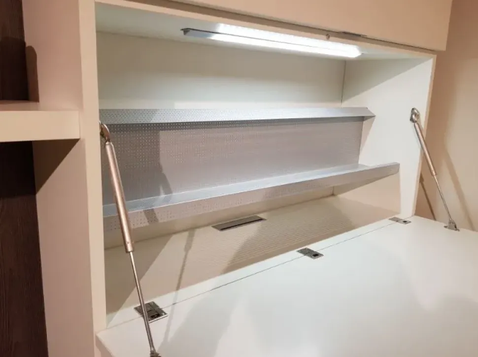 Home office e pannellatura con mensole acquistabili anche separatamente dal letto a scomparsa