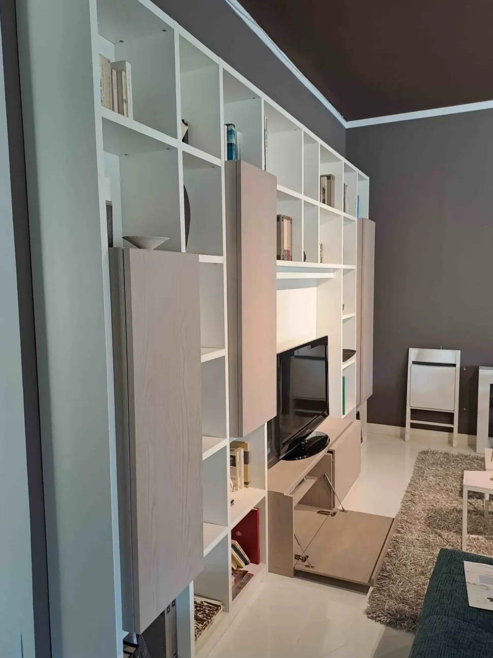 Con un mobile a terra come la libreria qui presente potrai valorizzare il soggiorno rendendolo pratico e dinamico.