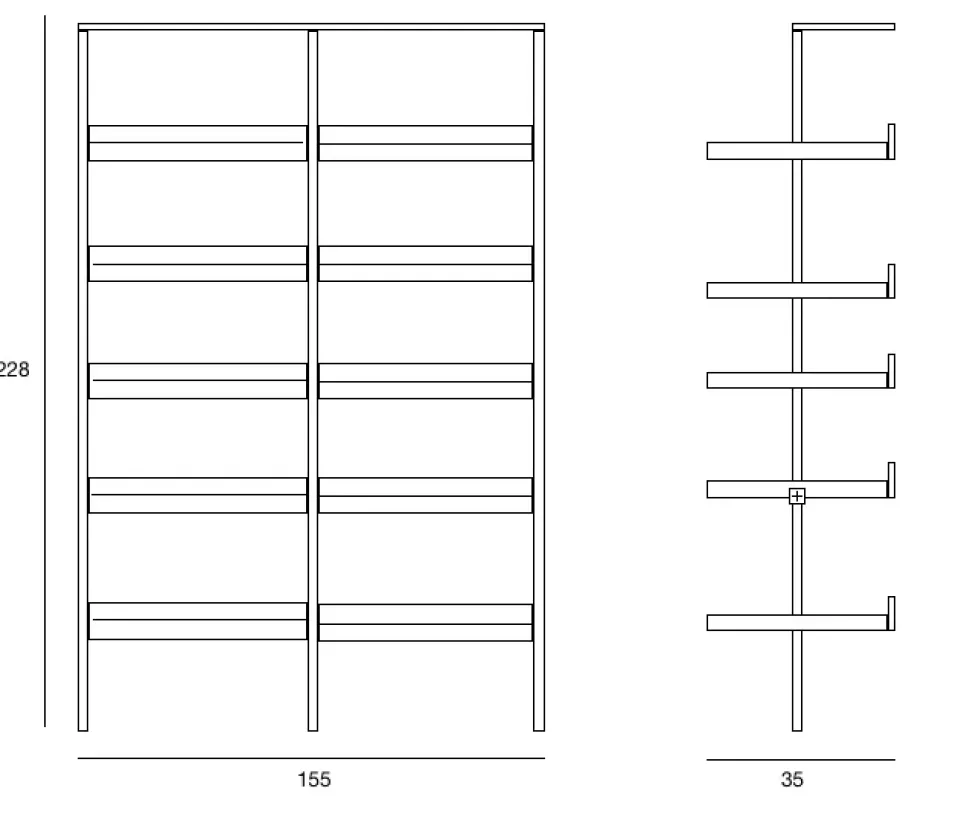 Nell’offerta outlet, è proposta in colore bianco nella versione a due moduli e misura complessivamente: L: 155 x H: 228 x P:35