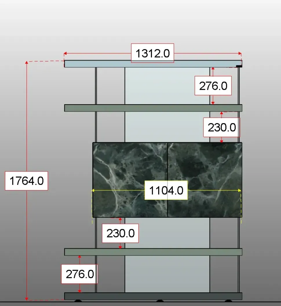 Dimensioni cm L 131,2 P 40,6 H 176,4 cm.
