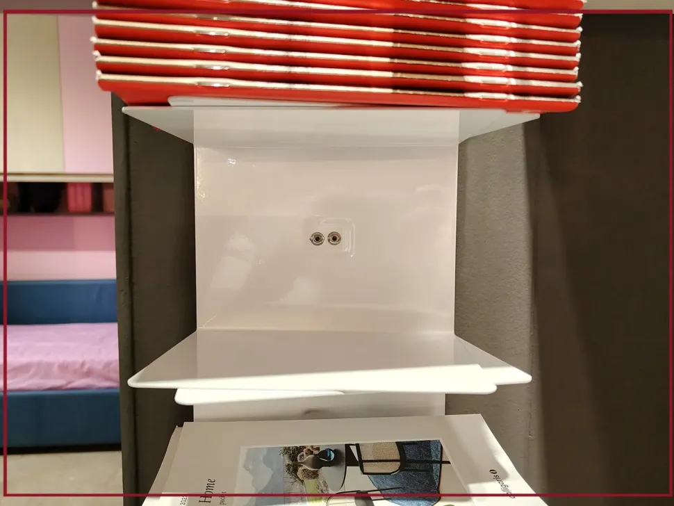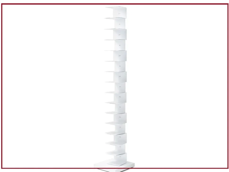 Libreria verticale self standing in acciaio laccato bianco per riviste o libri di grande formato.