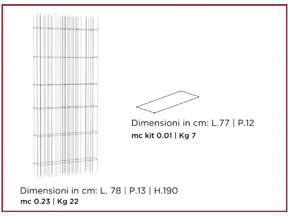 L. 78 cm – P. 13cm – H. 190 cm