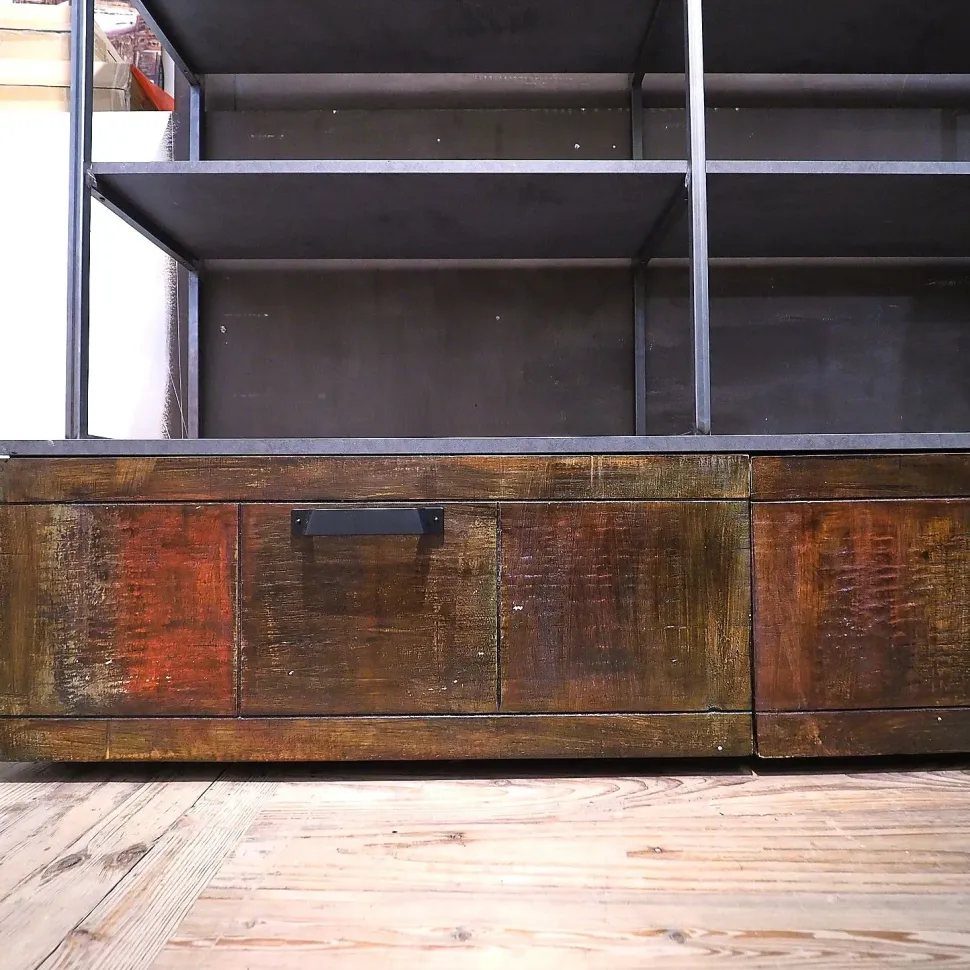 Scopri di più sul modello Libreria industriial con ante recicle e piani ossido cemento