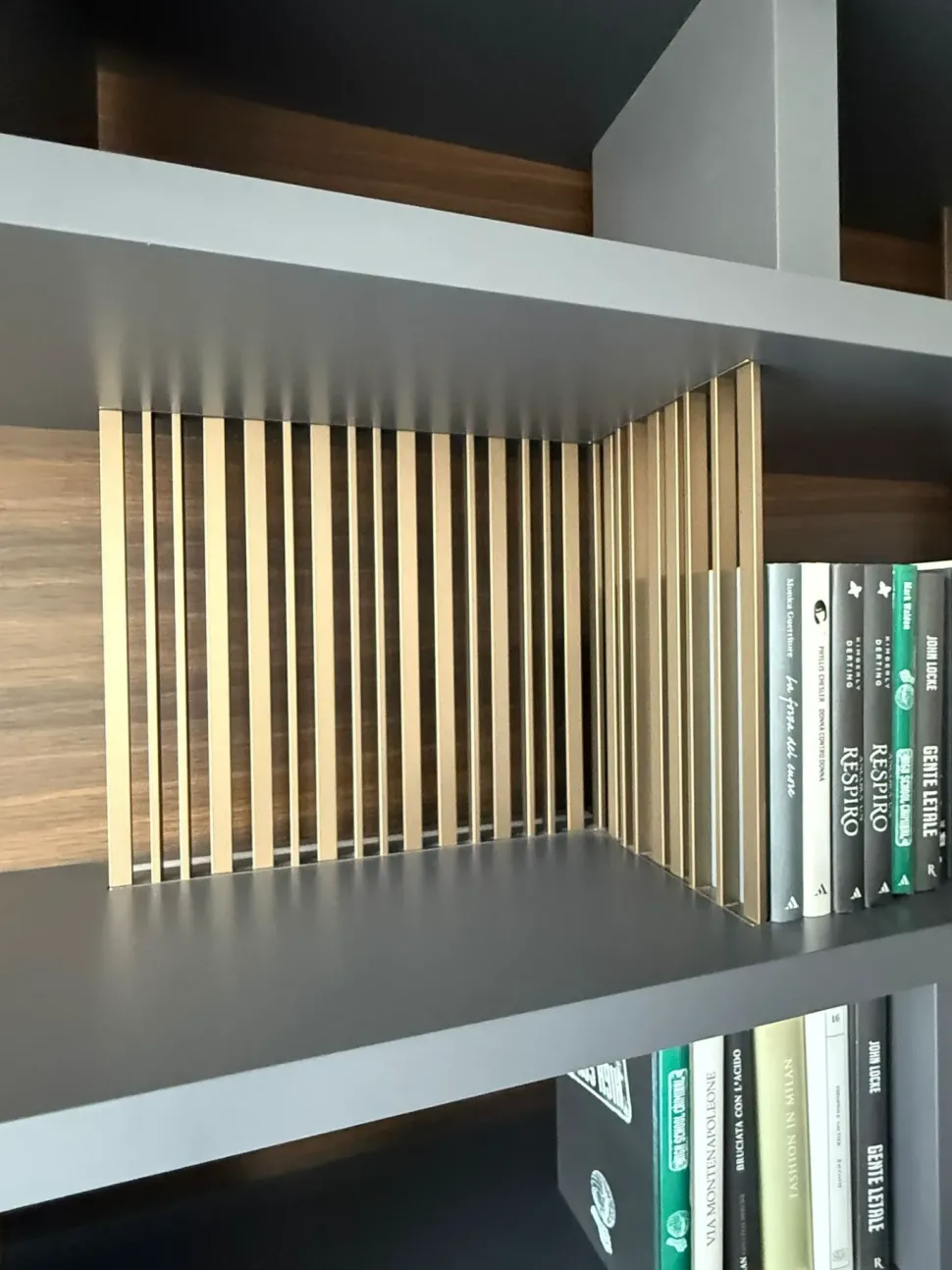 schienale in rovere e griglie color ottone