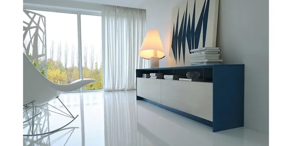 - Con il fine di poter risolvere svariate esigenze abitative, il marchio ha messo a punto una linea di arredi di diverse tipologie per il soggiorno; il modello visibile in foto è un mobile a terra, plurifunzionale e ampio.
