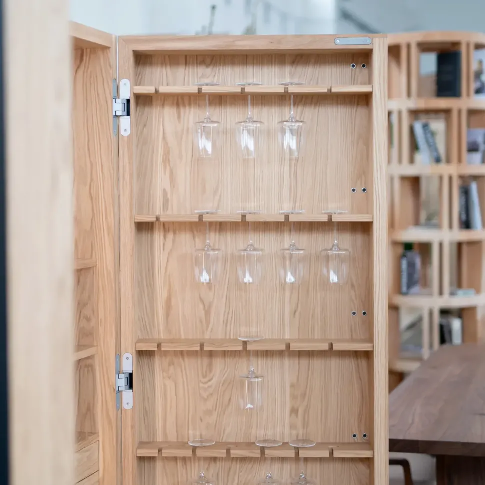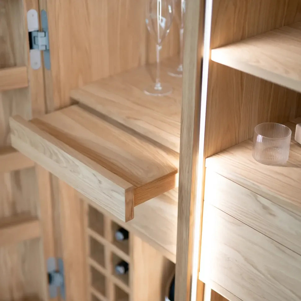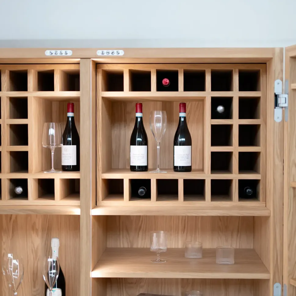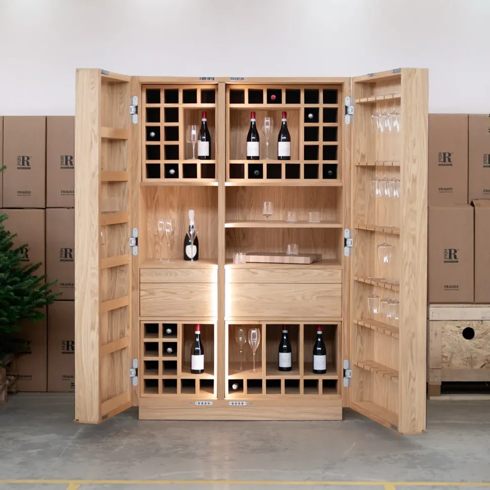 Cambusa mod. Wine Jambo in rovere senza nodi L.127/254 P.78,7 H.201 cm sistema apertura push pull