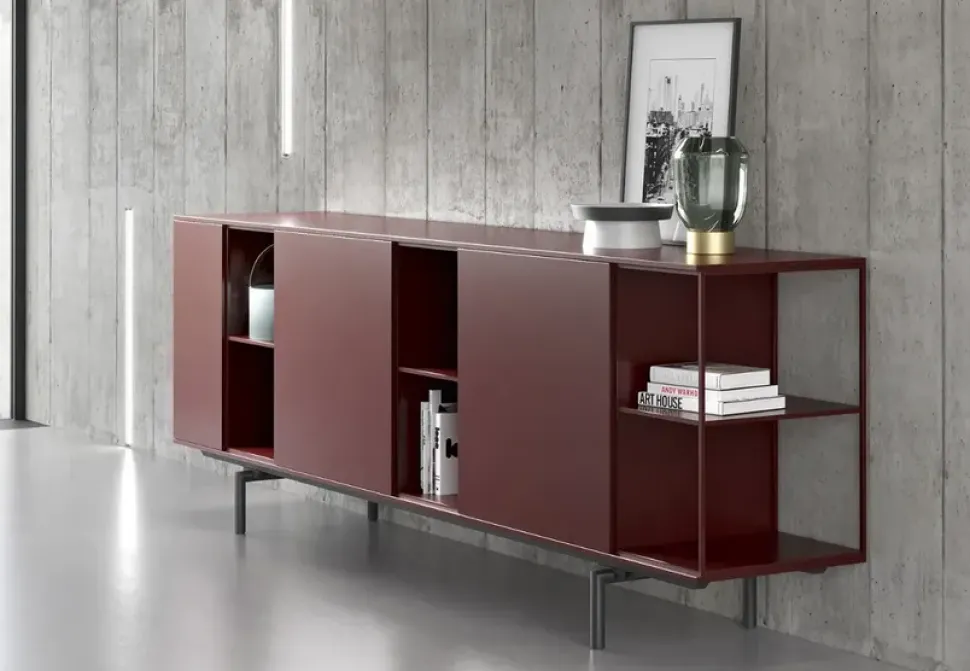 Le madie e i mobili per il soggiorno, come il modello Lexia presente in foto, sono fondamentali sia dal punto di vista estetico che per la funzionalità: potrai riporci oggetti, oggetti d’uso quotidiano o propriamente decorativo. La madia in melamminico in foto unisce le doti di funzionalità e stile dell’ambiente dando vita a un progetto d’arredo design.