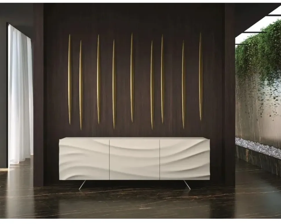 La madia modello Fluida * qui visibile saprà valorizzare il tuo living mettendo in risalto le doti estetiche del locale: questo mobile in laccato opaco ti permetterà di avere sempre a disposizione una superficie di appoggio plurifunzionale, esaltando allo stesso tempo lo stile moderno del living.