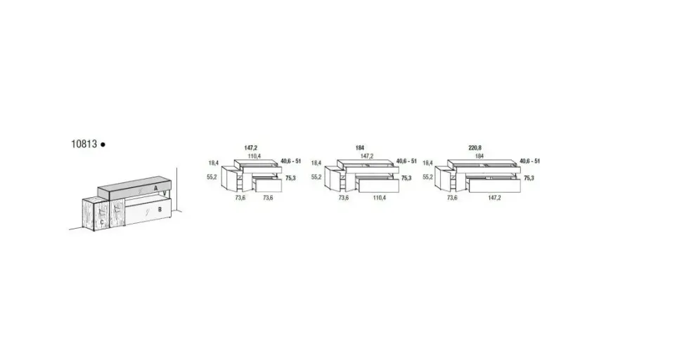 Questo mobile a prezzo ribassato misura da 101 a 150 cm in larghezza.