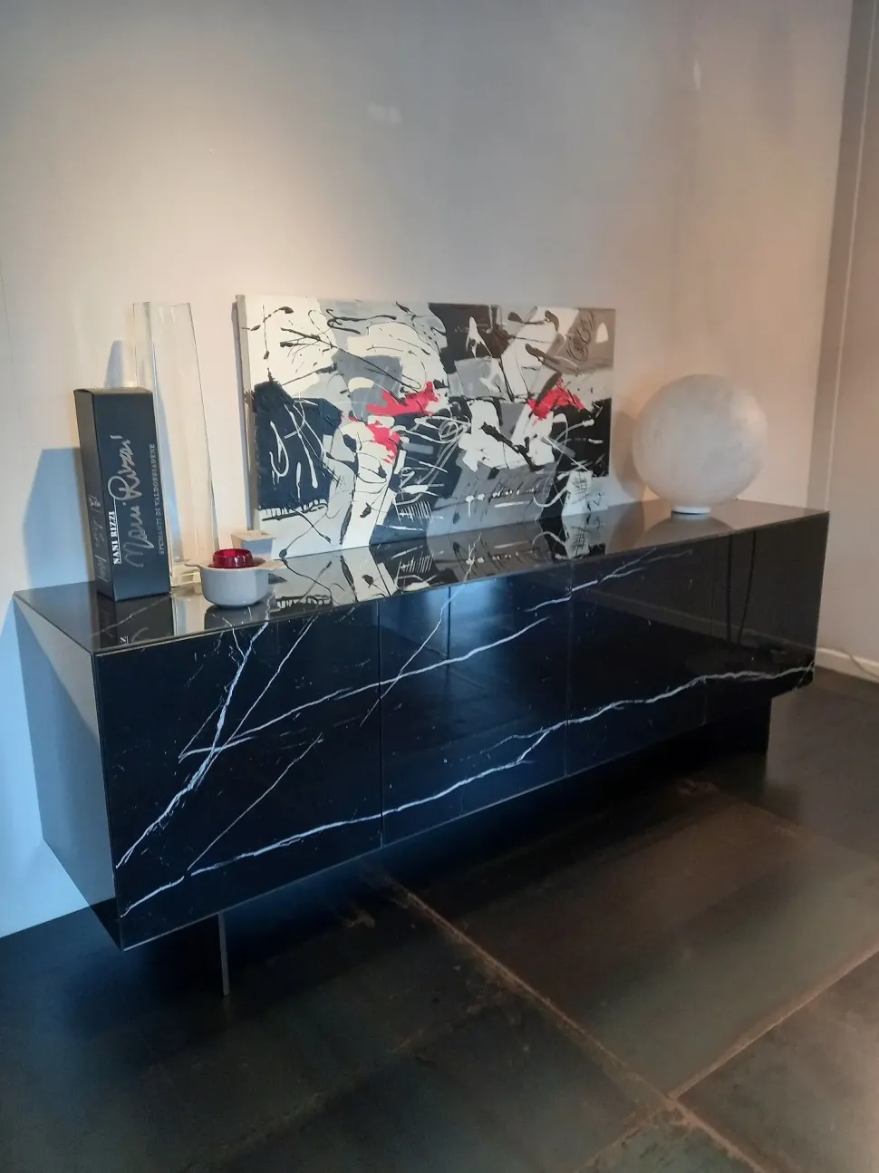 FINITURA: XGLASS MARQUINA LUCIDO, PIEDI PELTRO STEEL