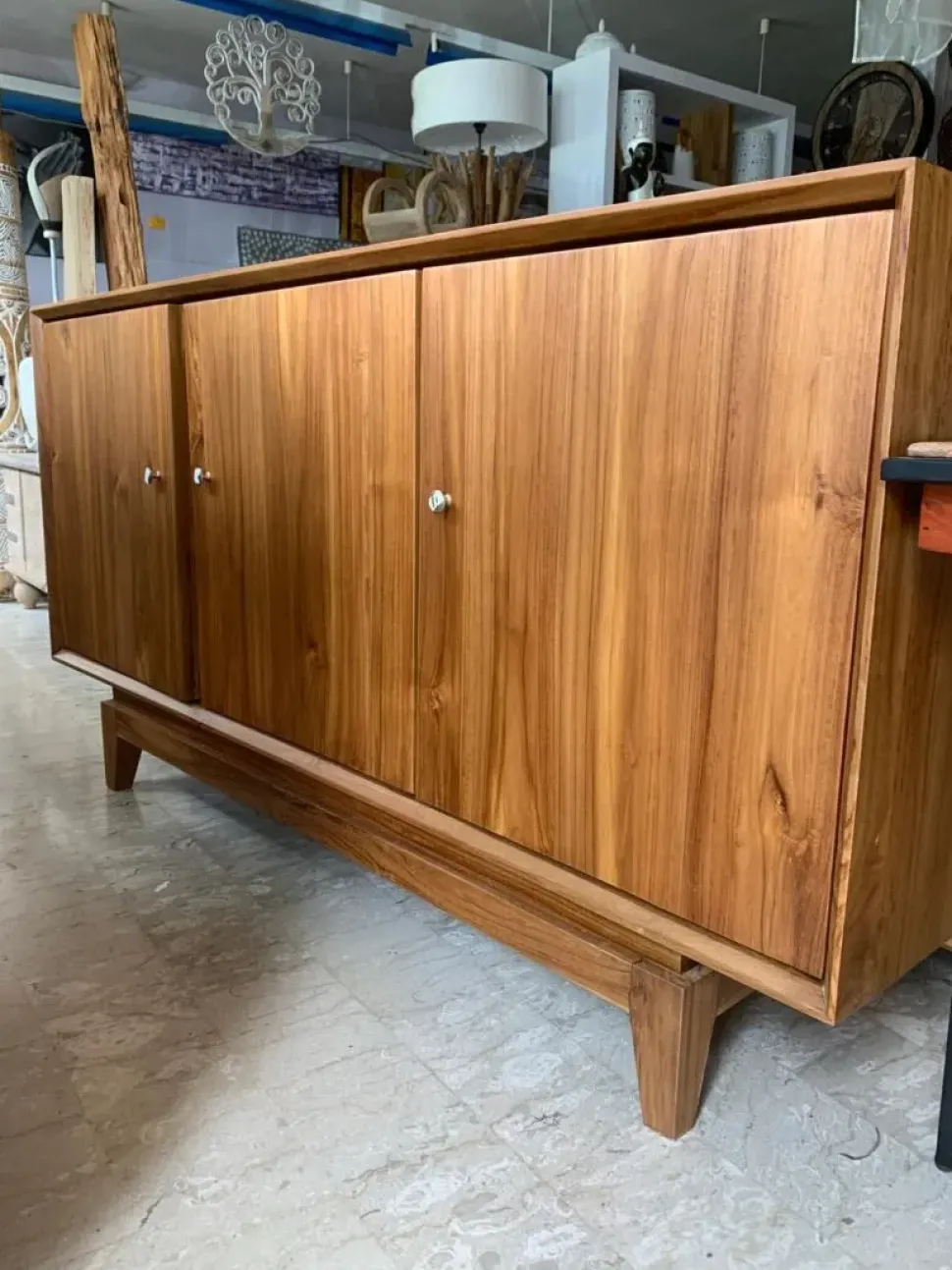 La madia modello Madia credenza teak 150 qui presente saprà valorizzare il tuo living mettendo in risalto il valore estetico del locale: questo mobile in legno ti consentirà di avere sempre a disposizione un piano d’appoggio multifunzionale, esaltando al contempo lo stile design del living.