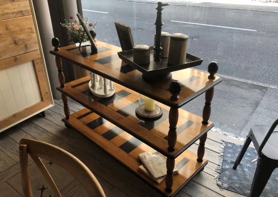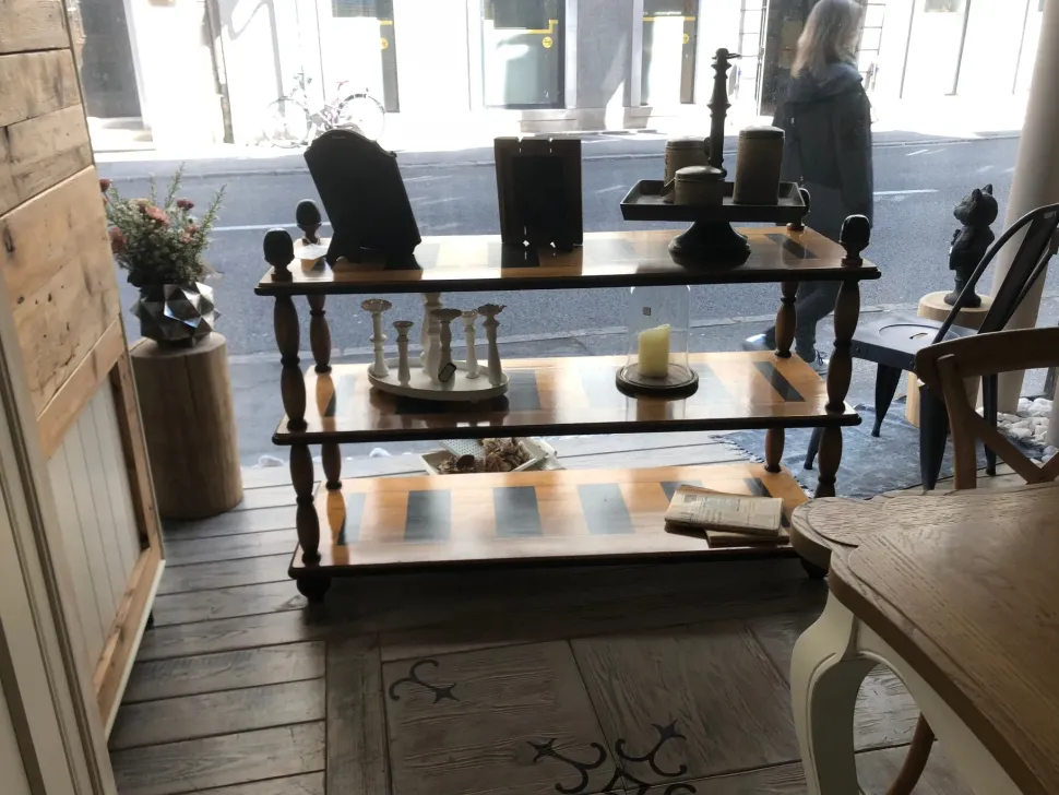 L’etajere è costruito completamente in legno massello, verniciato con ben 8 mani di finitura secondo la tradizione artigiana toscana