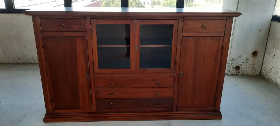 La madia modello I solisti qui visibile saprà completare il tuo soggiorno mettendo in risalto le doti estetiche del locale: questo mobile in legno ti permetterà di avere sempre a disposizione una superficie di appoggio multifunzionale, esaltando contemporaneamente lo stile classico del soggiorno.